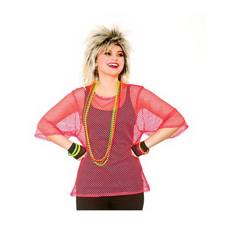 Short Sleeved Mesh Top (Neon Pink) - Women
