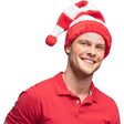 Bring a burst of colour and joy to your festive look with this delightful Red and White Striped Santa Hat. Featuring a bright and cheerful striped design, this hat adds a fun and whimsical twist to the classic Santa style.