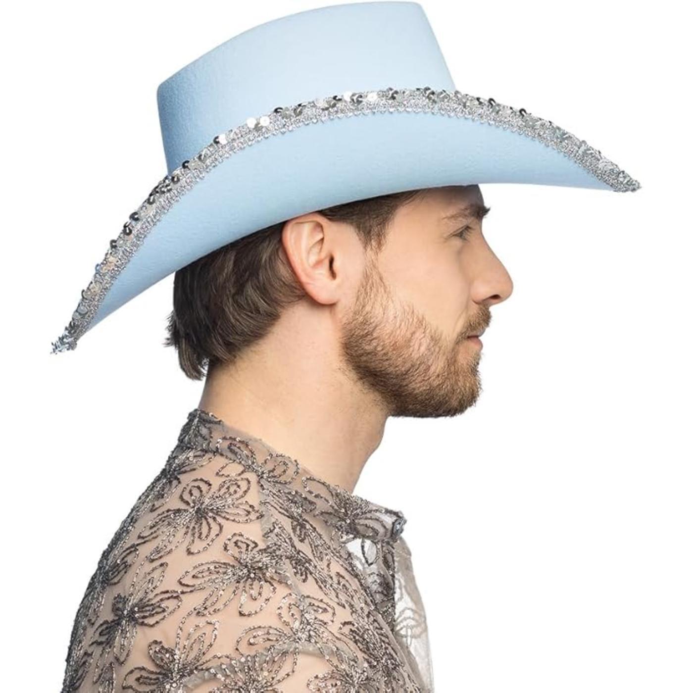 Light Blue Rhinestone Cowboy Hat – Glitter Western Fancy Dress Accessory