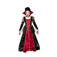 Prepare to scare all your friends with the amazing Princess Vampira costume. This captivating costume is designed to unleash your inner vampire royalty and create an unforgettable presence. The costume features a black and red floor-length dress with exquisite gold stitching and a corseted design on the bodice. It also includes long black sleeves and see-through shoulder pieces for an elegant and haunting touch.