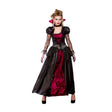 Seductive and evil, the vampire queen is out for blood. Gothic long black and red dress with choke collar and gem. A regal dressing up idea for Halloween.