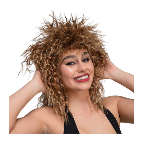 Adult Women's Wild Child Curly 1980s Pop Star Wig Fancy Dress Accessory - Blonde