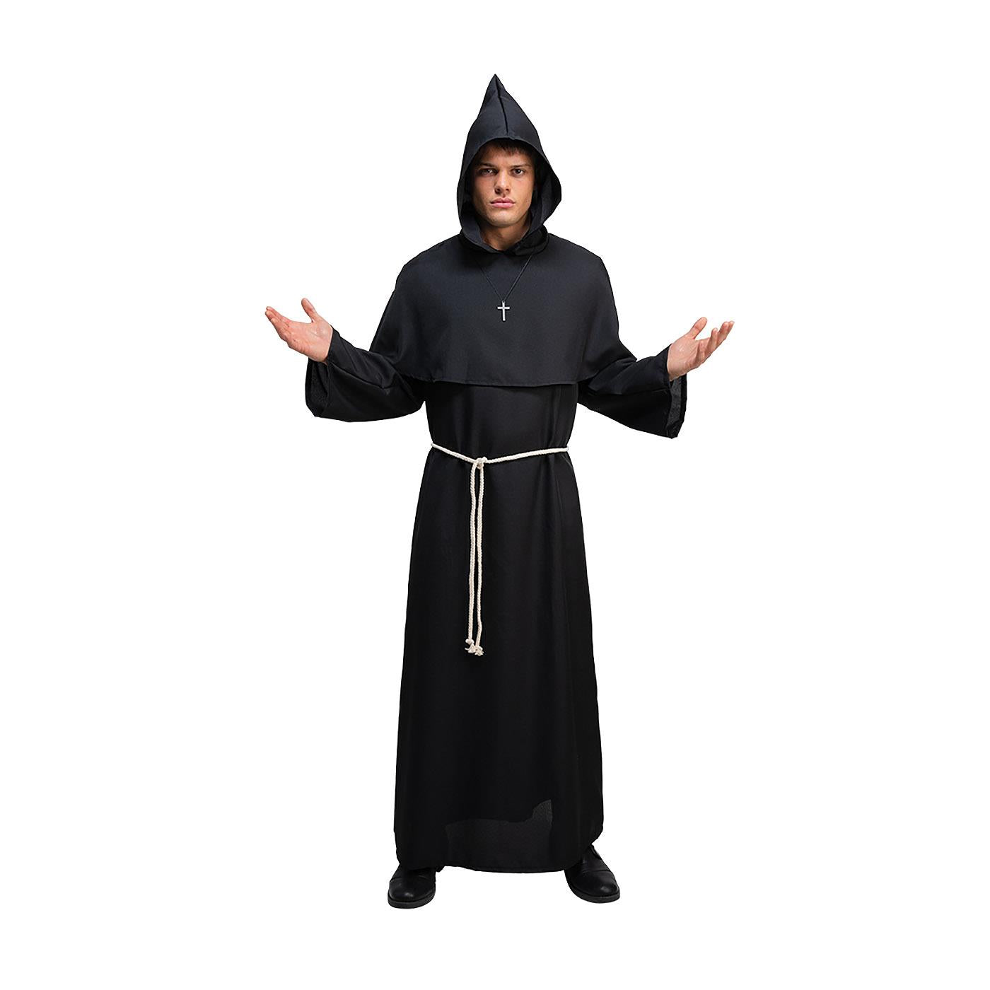 Add a darker twist to tradition with this dramatic Black Medieval Monk Costume. Perfect for Halloween, gothic events, theatre performances, or medieval-themed parties, this costume is sure to make an impact.