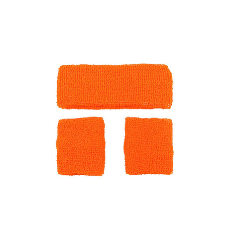 80s Sweatband & Wristbands (Neon Orange) - Adult