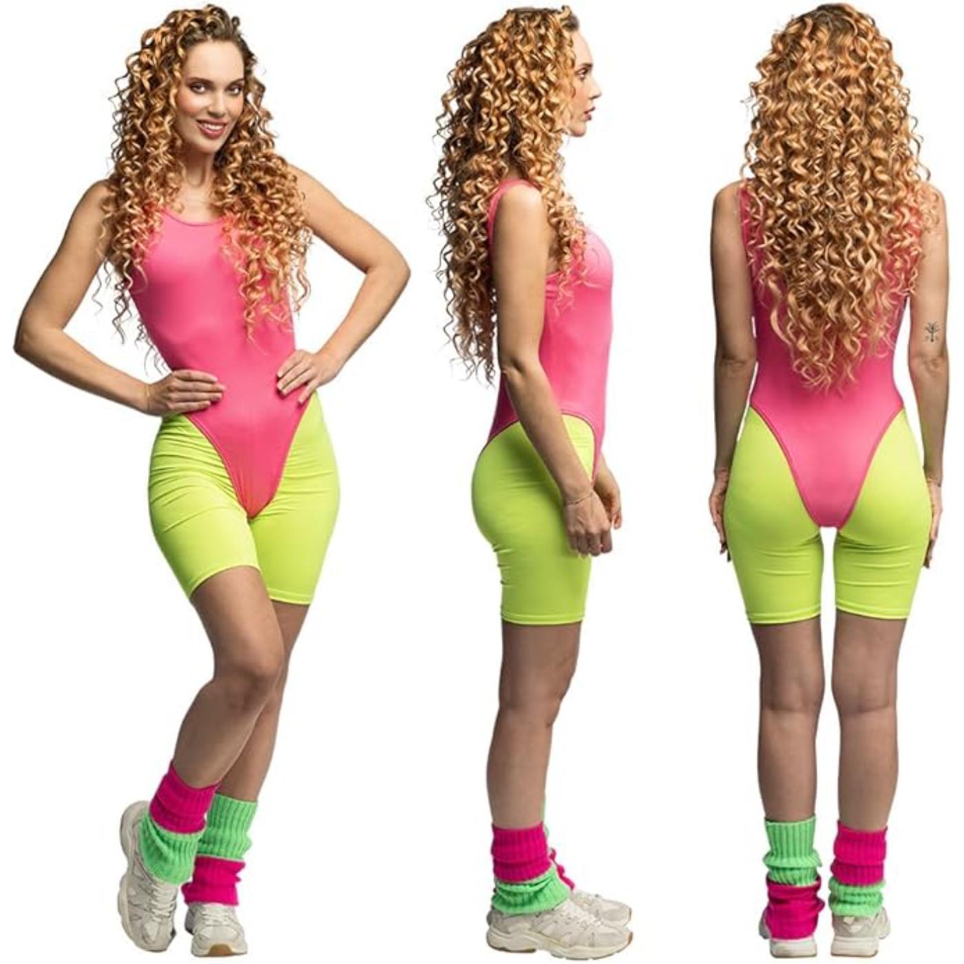 80s Neon Aerobics Costume – Retro Workout Fancy Dress for Women