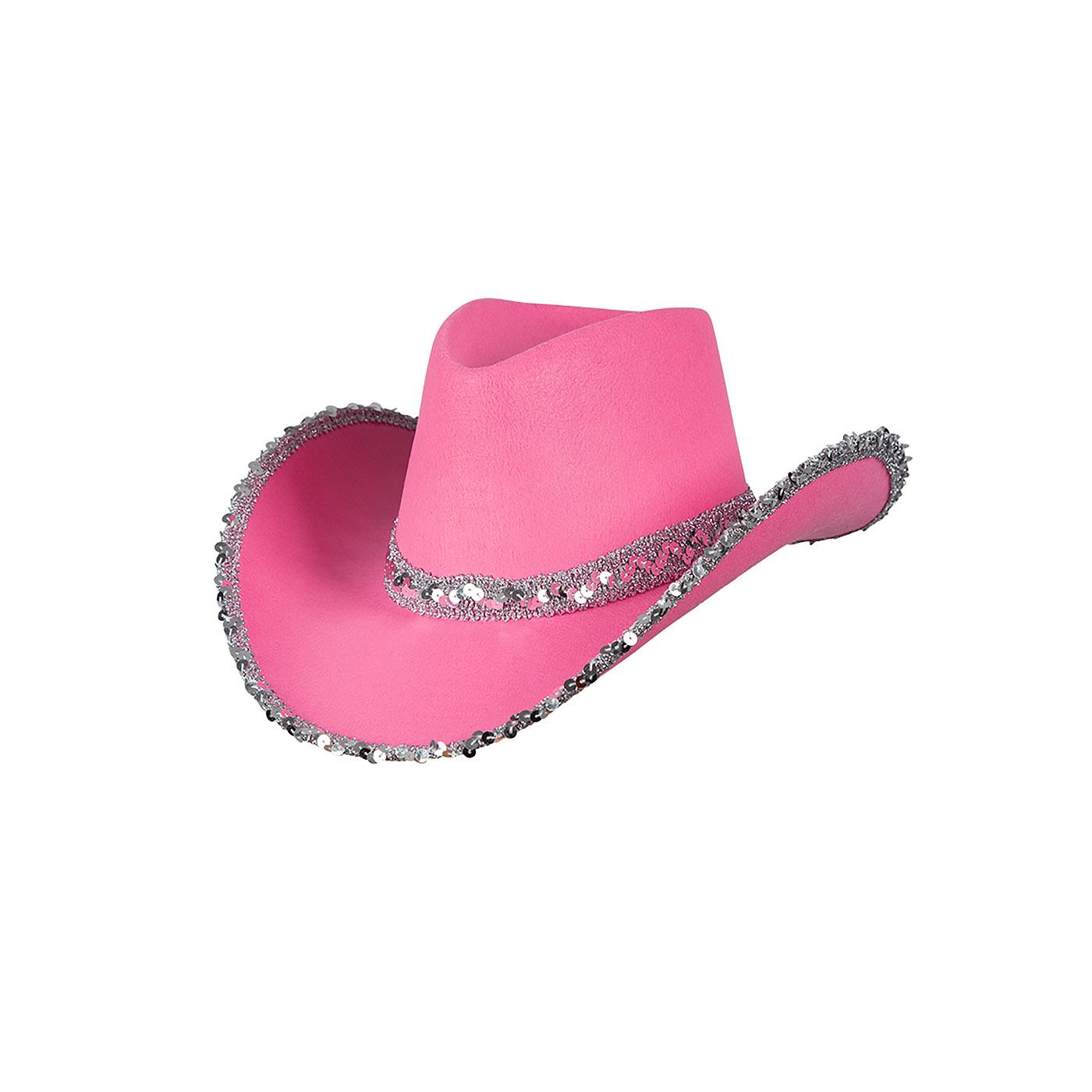 - Hot Pink Sequin Cowboy Hat with Silver Trim